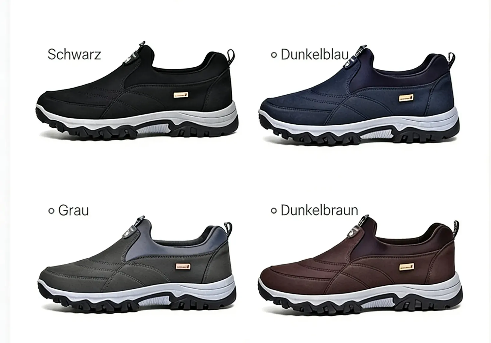 Ob im Freizeitbereich, bei der Arbeit, auf Wanderungen oder im Alltag – diese Schuhe kombinieren orthopädischen Komfort mit modernem, dezentem Design. Erhältlich in 4 zeitlosen Farben (Schwarz, Dunkelblau, Grau, Dunkelbraun) und Größen 39-47, passend zu jeder Garderobe und jedem Fußtyp.