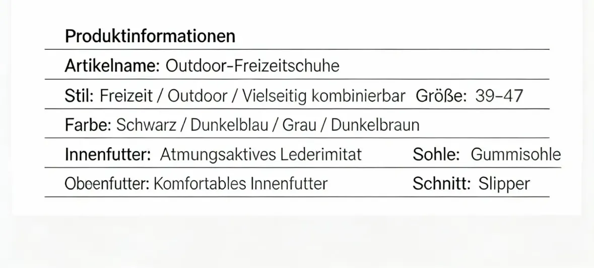 Die abriebfeste Gummisohle mit tiefem Profil bietet maximalen Halt auf unebenen Wegen, nassen Straßen und steinigen Wegen – perfekt für Wanderungen, Spaziergänge und tägliche Erledigungen. Die atmungsaktive Oberfläche aus Lederimitat ist wasserabweisend, strapazierfähig und leicht zu reinigen, ideal für den ganzjährigen Einsatz.