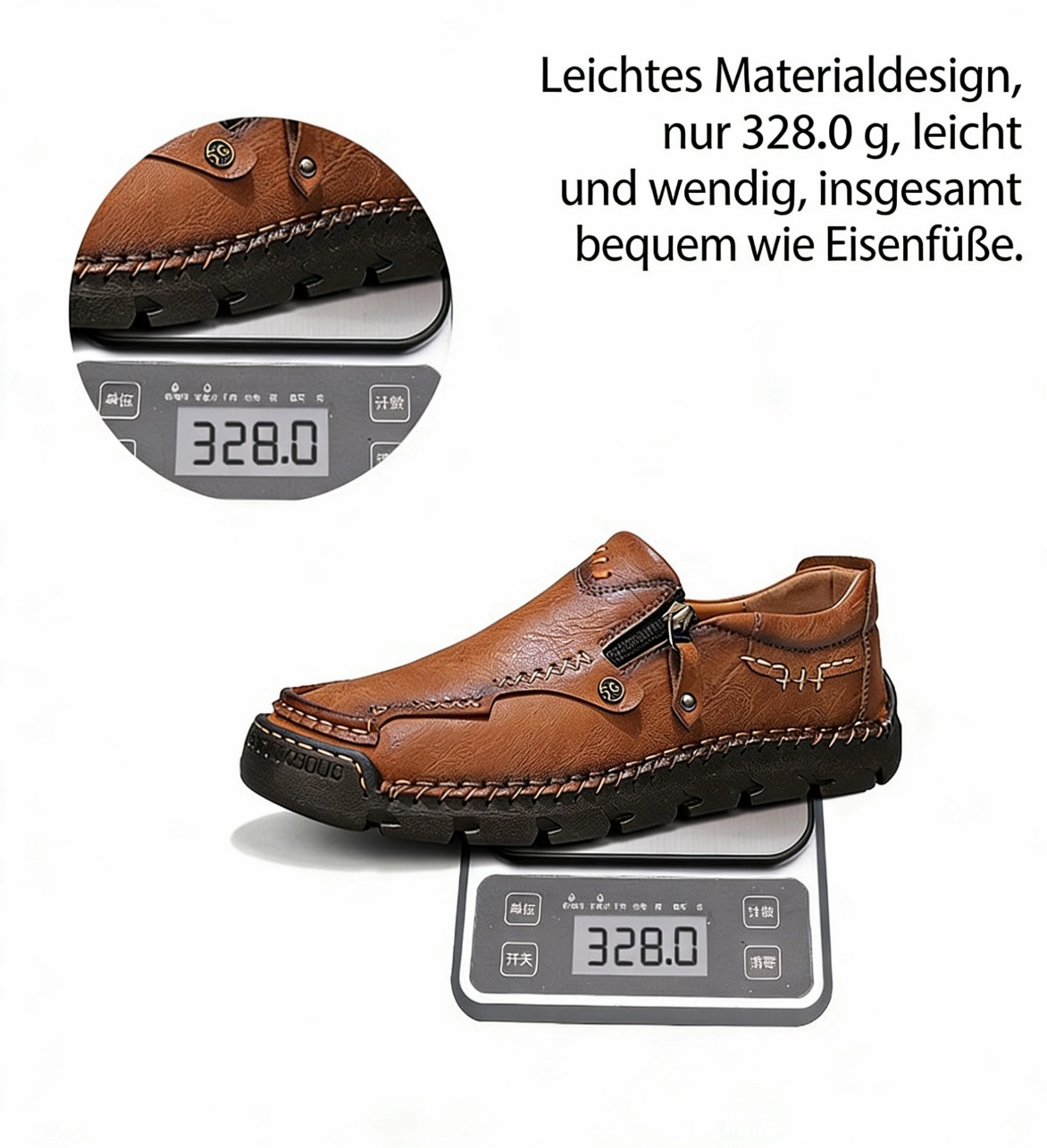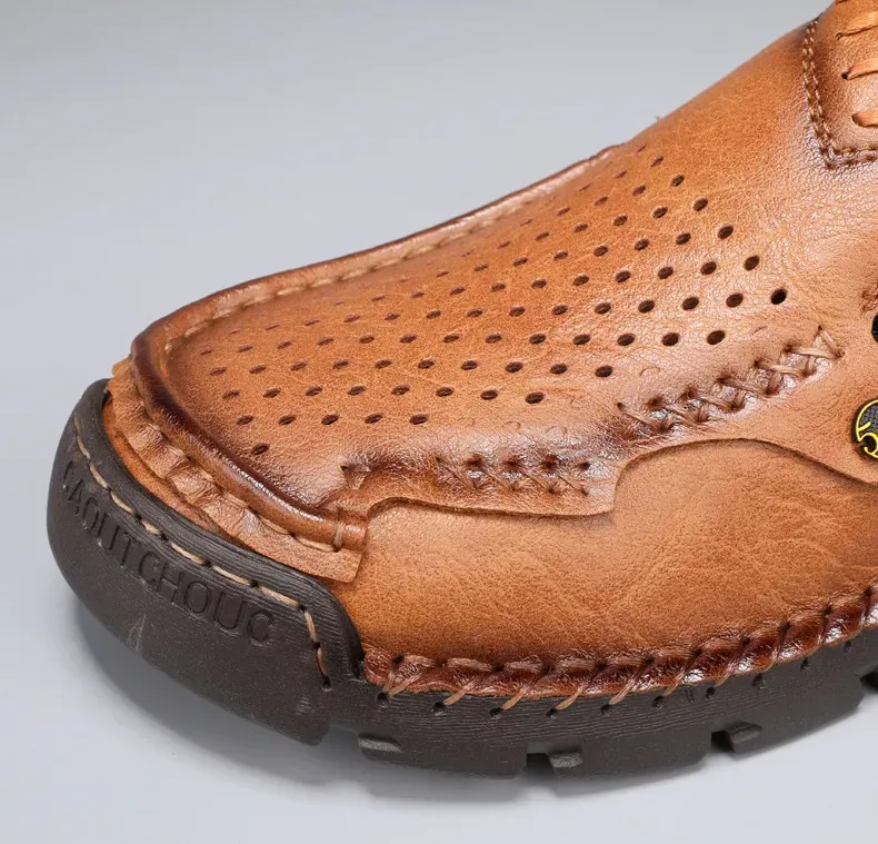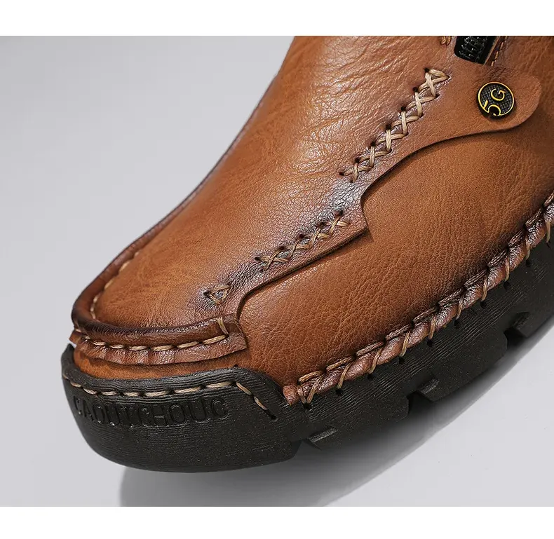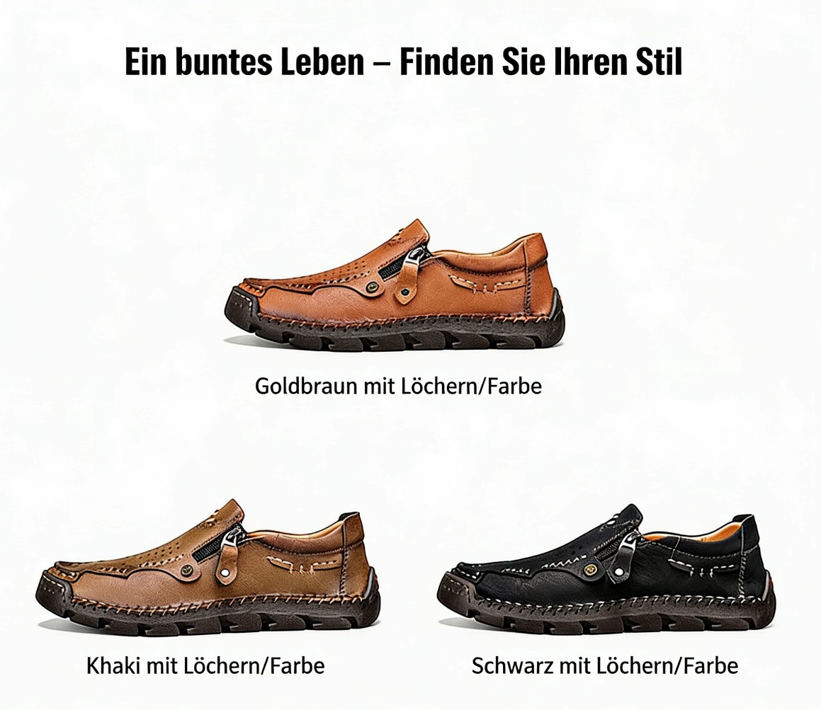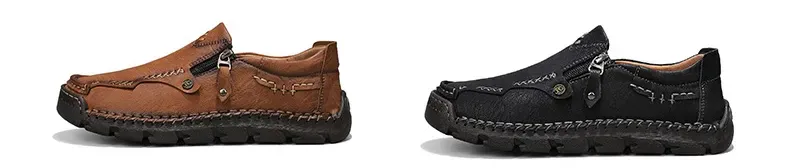 Herren-Slipper aus echtem Leder mit Reißverschluss, bequeme Freizeitschuhe, rutschfeste Gummisohle, atmungsaktiver Retro-Stil.